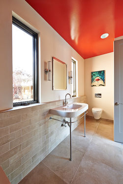 2164sf addition to 1999 two-story house. Owners of prominent horse farm desired addition to provide new master suite, media room, exercise, office and main entry, with references to design vocabulary of existing house.
